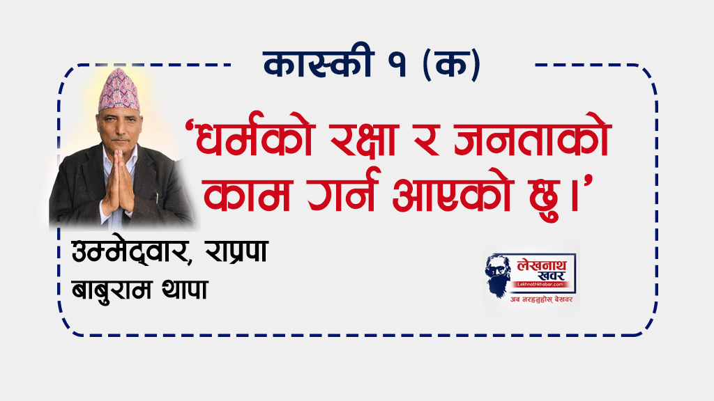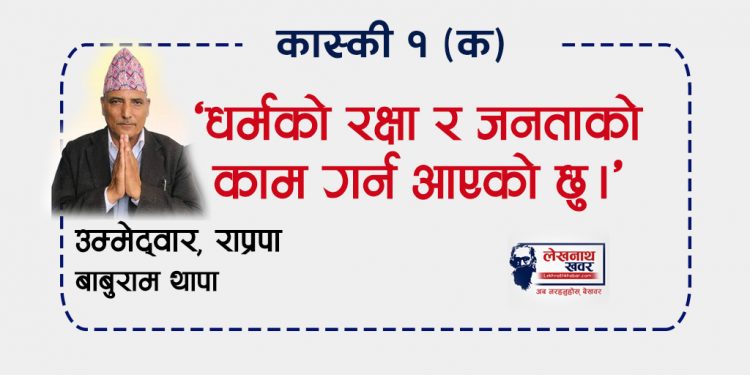 पोखरा । राष्ट्रिय प्रजातन्त्र पार्टीको तर्फबाट कास्की क्षेत्र नम्बर १ (क) मा उम्मेदवारी दिएका बाबुराम थापाले आफू जनताको चाहना अनुसार प्रदेश सभाको चुनावी मैदानमा आएको बताएका छन् ।