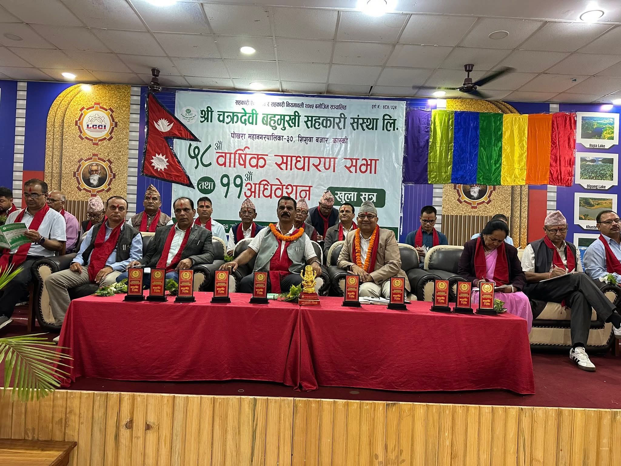 लेखनाथ १४, भदौ । कास्कीको पोखरा महानगरपालिका वडा नम्बर ३० को शिशुवामा रहेको चक्रदेवी बहुमुखी सहकारी संस्थाको ५८ औं साधारण सभा तथा ११ औं अधिवेशन अर्जुन कुमार ताम्राकारको अध्यक्षतामा नयाँ नेतृत्व चयन गरेको छ ।